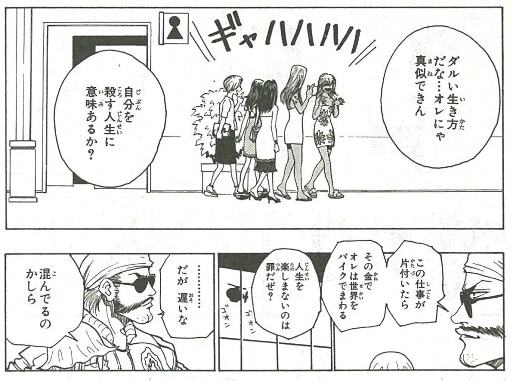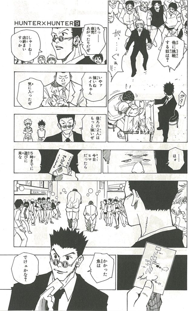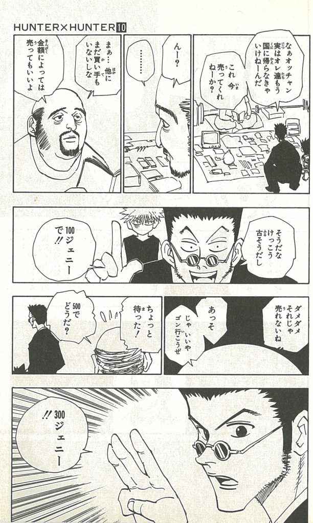 レオリオがハンターになる動機は金であり、それは本心であるが、所詮世の中は金なんだよと語るのは複雑な心理作用がある。金がなかったことによる無力感と絶望の反動によるものであり、偽悪的に資本主義を説くところにこのキャラクターの深みがある。