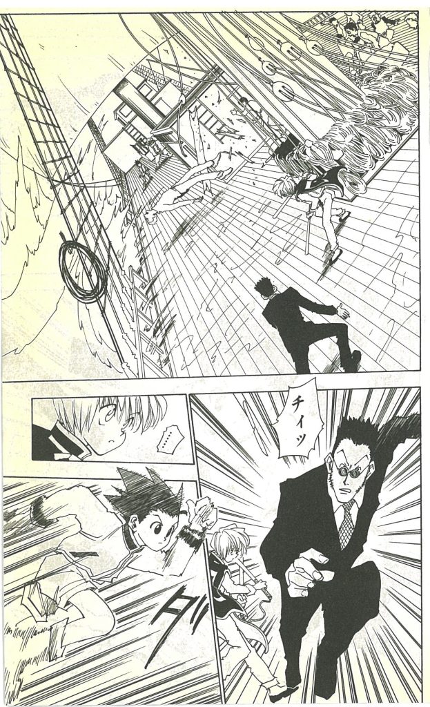 ハンター試験会場を目指す道中で、クラピカはレオリオの評価を変えたのである。表面上は金金金と言ってはいるが、どうもそれだけの人間ではないらしい。そう思うようになったのだ。レオリオへの見方が変わった、と表現されているであろうシーンは一か所ある。それはレオリオとの決闘時、飛んできた木材に弾き飛ばされた船員が海に投げ落とされるシーン。