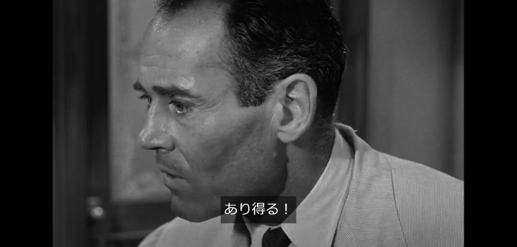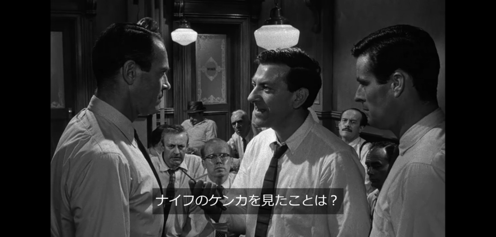 劇中の後半では8番から記憶力を試す挑戦を受けますが、それも真っ向から引き受けています。また先に引用したナイフは、ここは実際に映像を観てほしいところなので画像や台詞の引用はしませんが、ナイフはその独特のデザインから一本しかないオリジナルなものだと認識されていたのですが、実は8番は全く同じデザインのナイフを町の質屋で発見しており、それを皆に見せつけます。一同は騒然し、議論は白熱したものになります。おそらく4番の問い詰めがなければ8番はナイフを出すことはなかったでしょう。8番にとっていい意味で壁として立ちはだかったように思います。