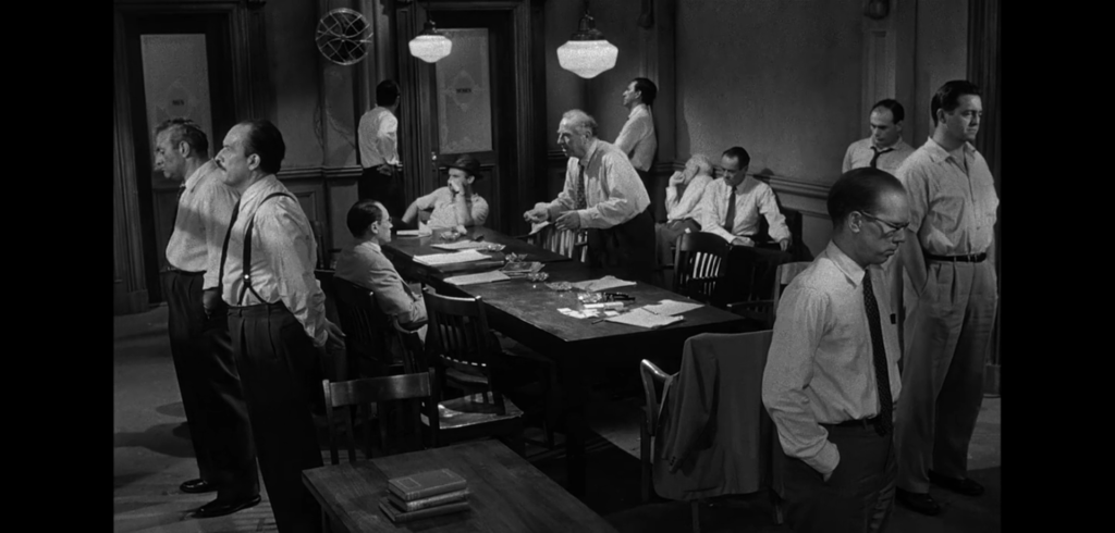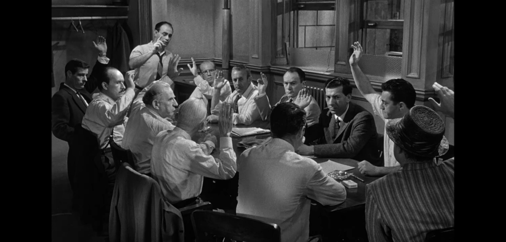 映画の概要は、陪審員として選ばれた十二人が被告人の有罪/無罪の判決を下すまでの喧々諤々の議論を描いたものです。陪審制度により全員の票が一致しなければなりません。十二人はそれぞれ番号で呼ばれ、名前は明かされません。