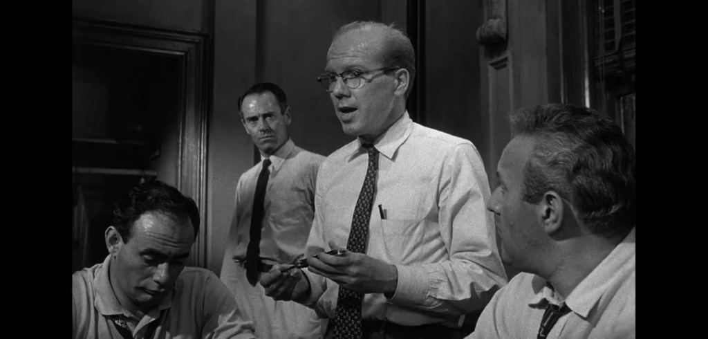 タイトルの「十二人」が示す通りこの映画は群像的で、明確に主人公と言える人物を挙げることには違和感が伴いますが、それでも8番を主役級として看做すことにはそう異論は起こらないでしょう。最初の挙手に唯一応じなかった人物です。本稿の考察はこの8番のタイピングを起点とすることにします。